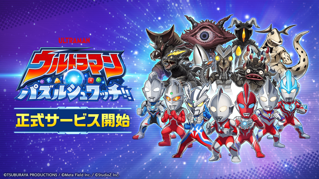 円谷フィールズホールディングスのデジタル事業戦略子会社であるメタフィールド株式会社(本社:東京都渋谷区、代表取締役社長 大塩 忠正、以下「メタフィールド」)は、株式会社円谷プロダクション(本社:東京都渋谷区、代表取締役社長 永竹 正幸、以下「円谷プロ」)監修のスマートフォン向けアプリゲーム『ウルトラマン パズルシュワッチ!!(通称:パズシュワ)』のサービスを正式に開始いたしました。